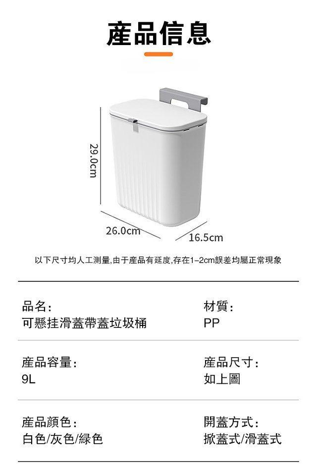可懸掛滑蓋帶蓋垃圾桶